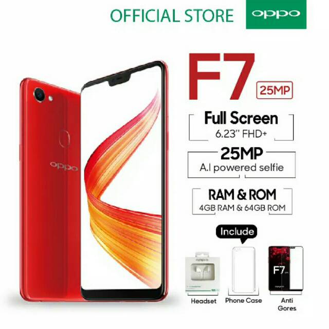 Bahkan Oppo F7 diyakini sebagai ponsel pertama produksi Oppo yang dibekali dengan layar berponi. Untuk hp Oppo F7 baru dengan RAM 4GB dan memori internal 64GB sekarang harganya sudah ada dikisaran Rp23 jutaan. Oppo F7 - Harga Terbaru Juni 2021 Blibli.
